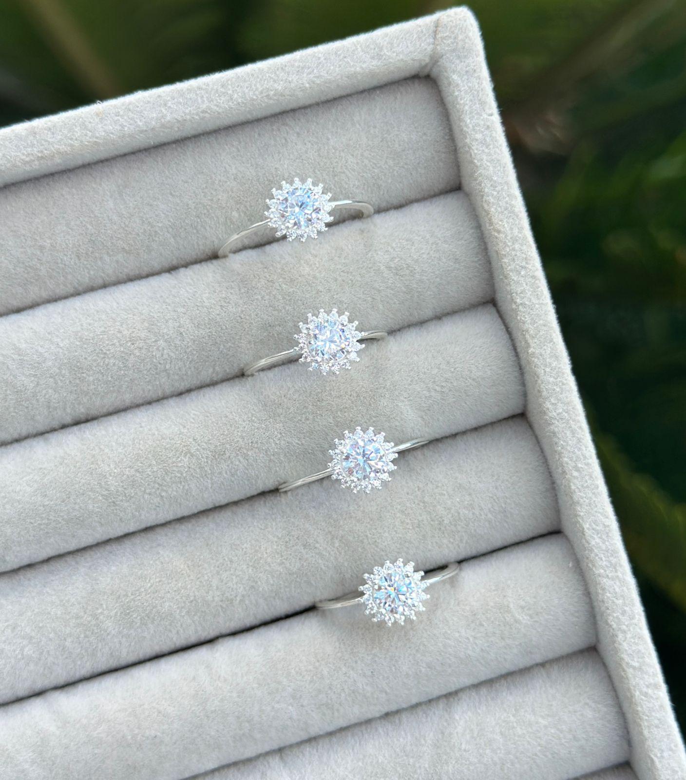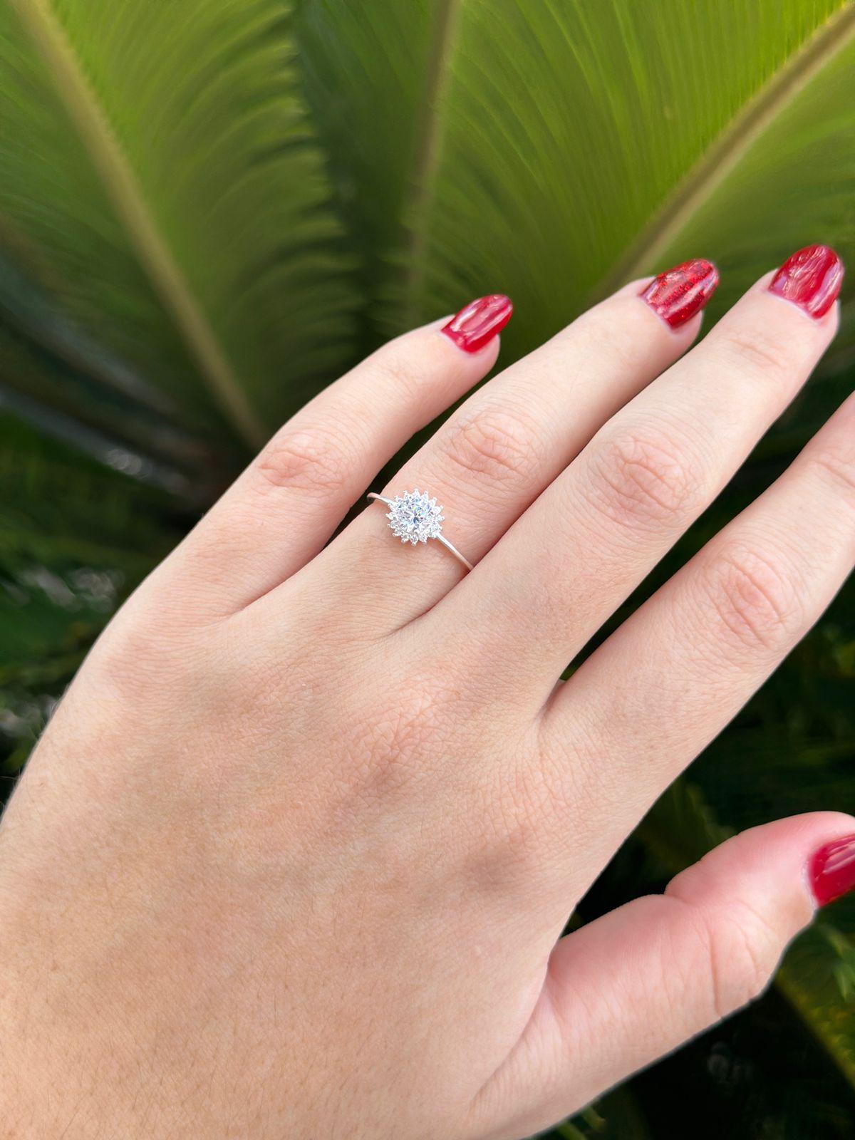 Anel Solitário Redondo Cravejado Cristal de Prata 925