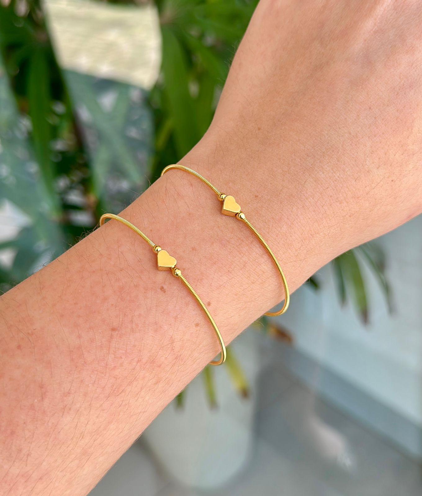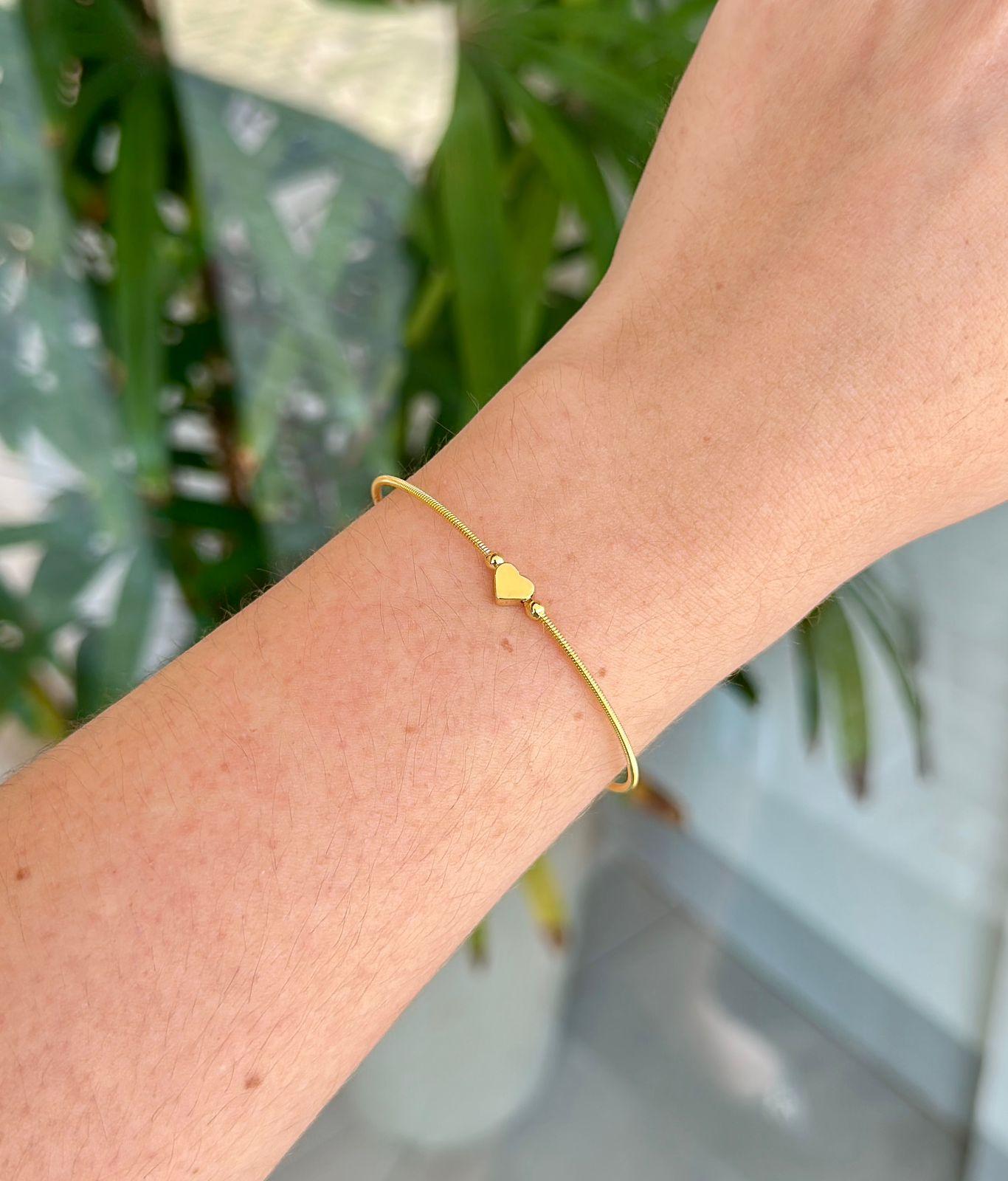 Pulseira Corda de Violão 1 Volta Bolinha Coração Ouro 18K
