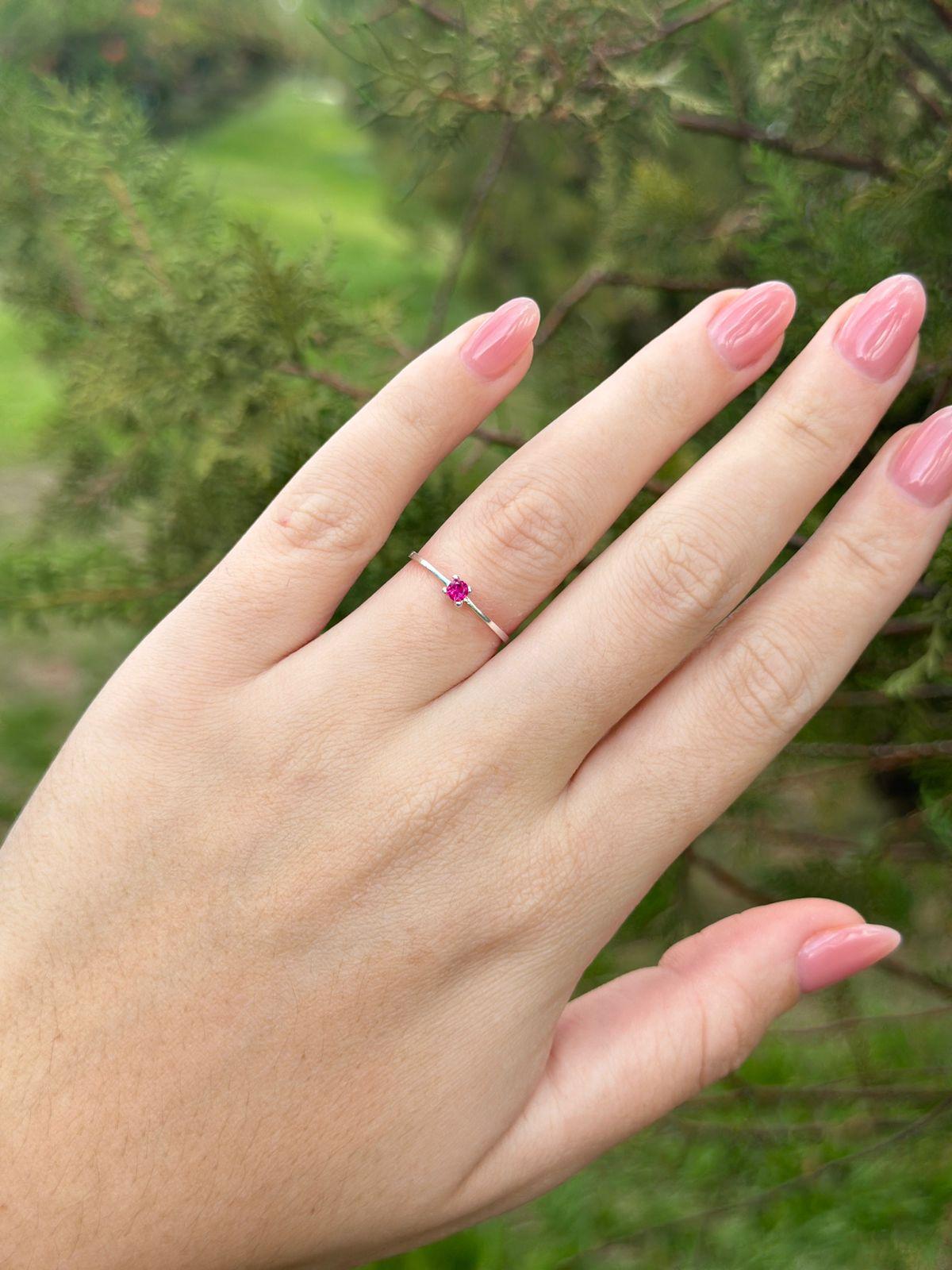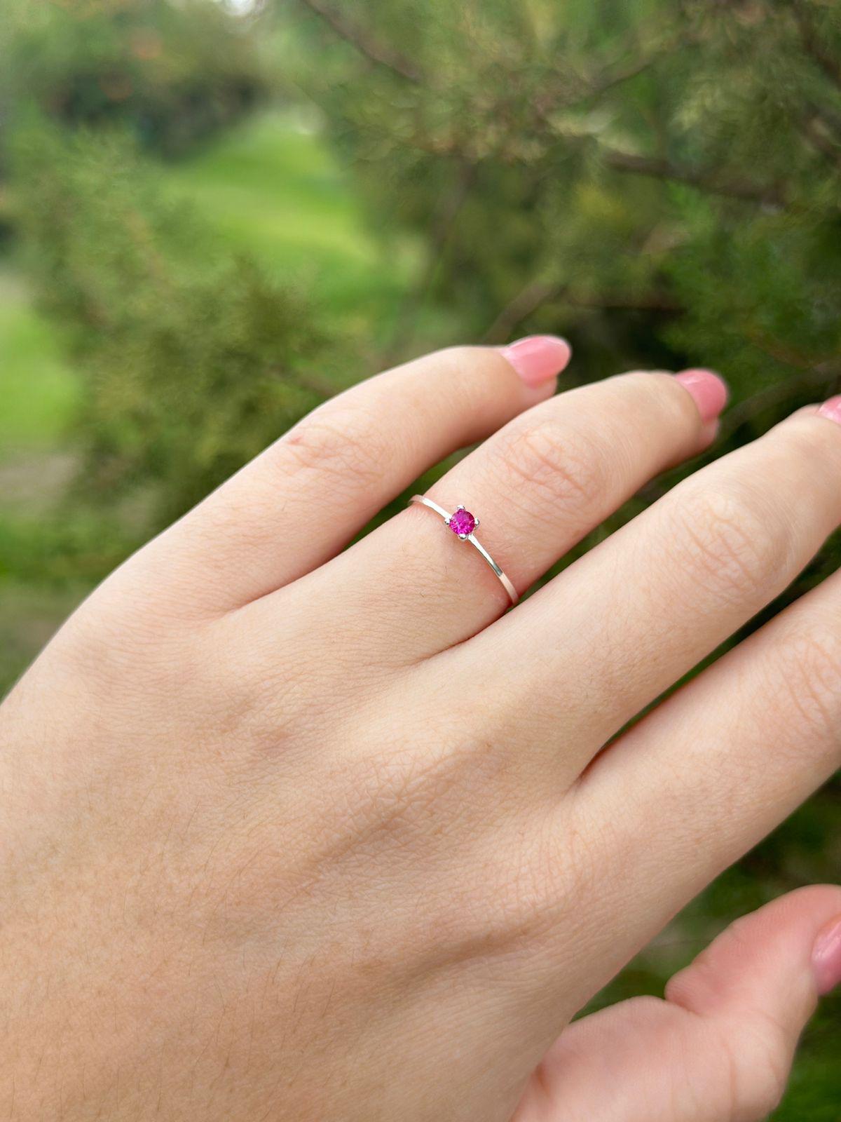 Anel Solitário Zircônia Pink Prata 925