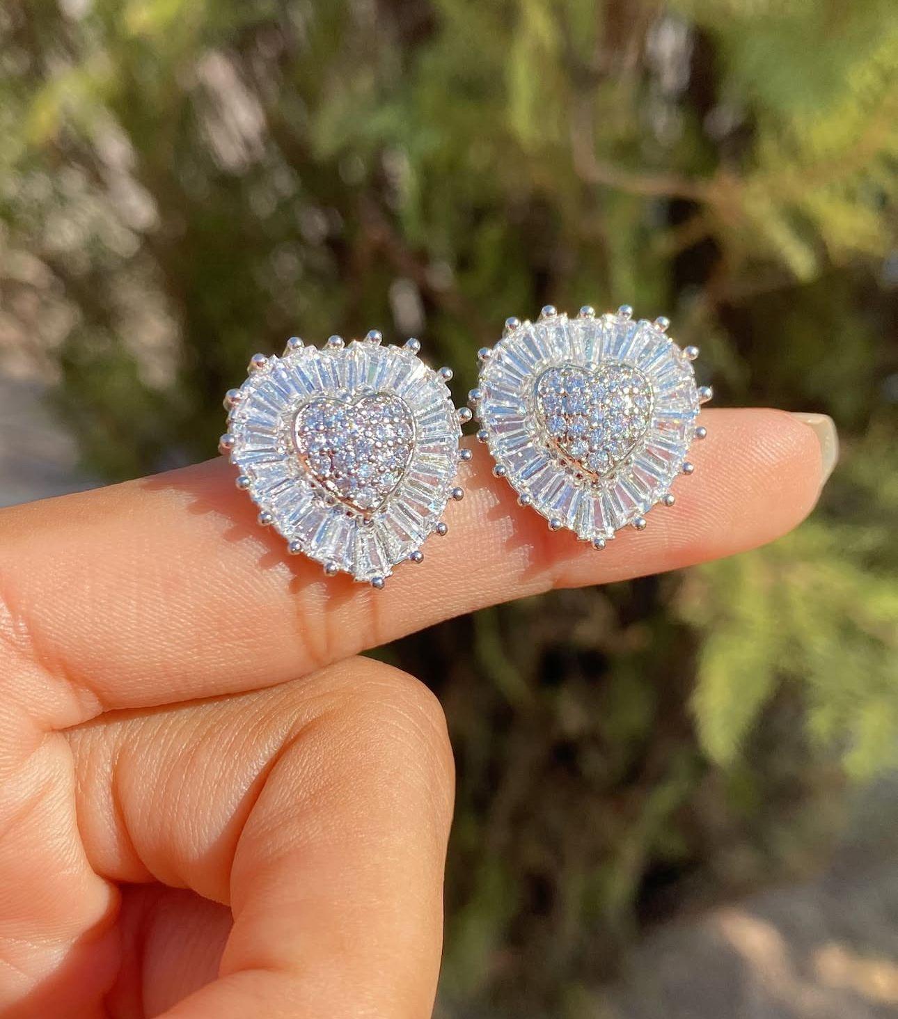 Brinco Coração Cravejado Ródio Branco