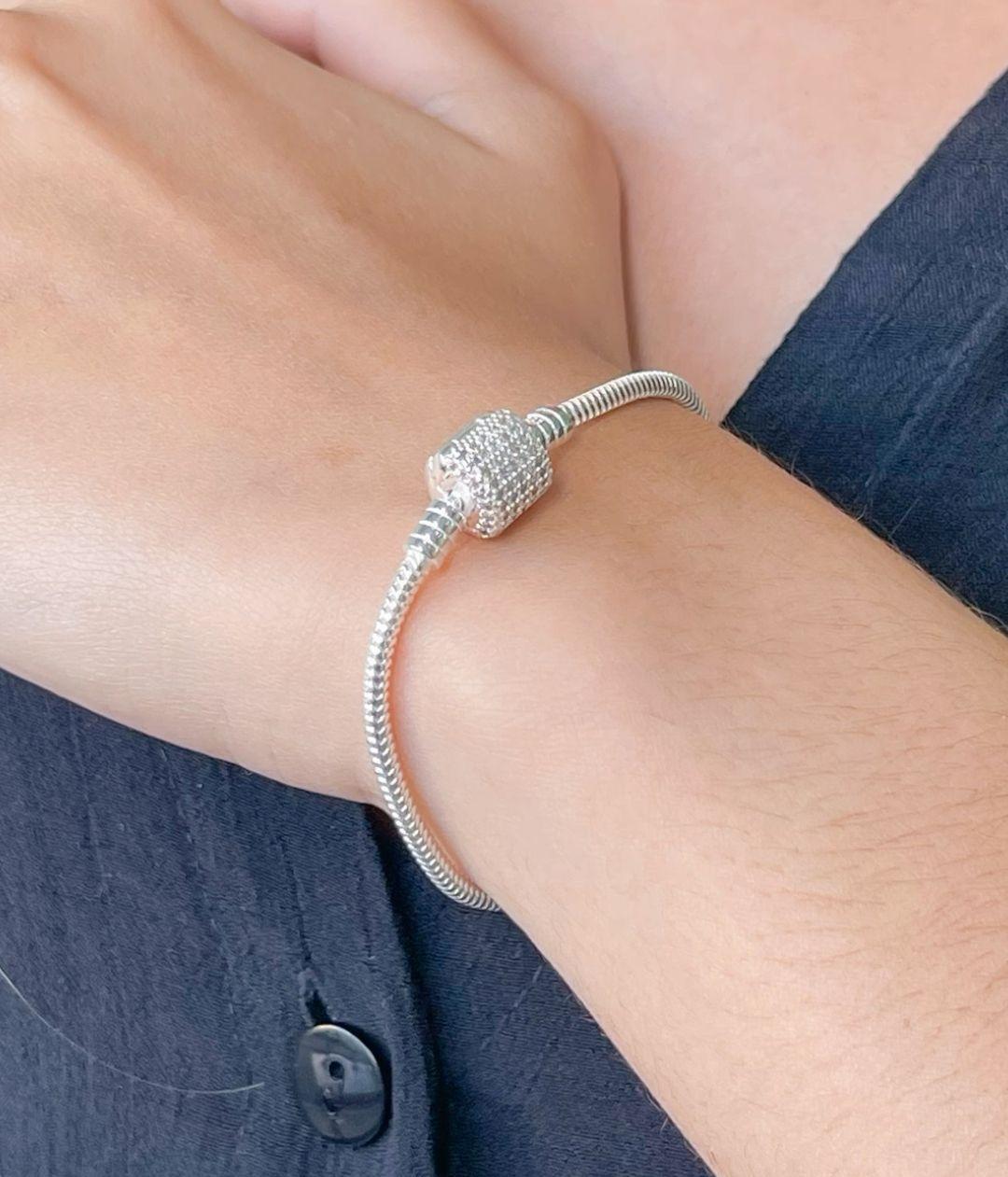 Produzida em prata, permite adicionar diversos berloques, criando uma joia única que reflete seu estilo e momentos especiais.