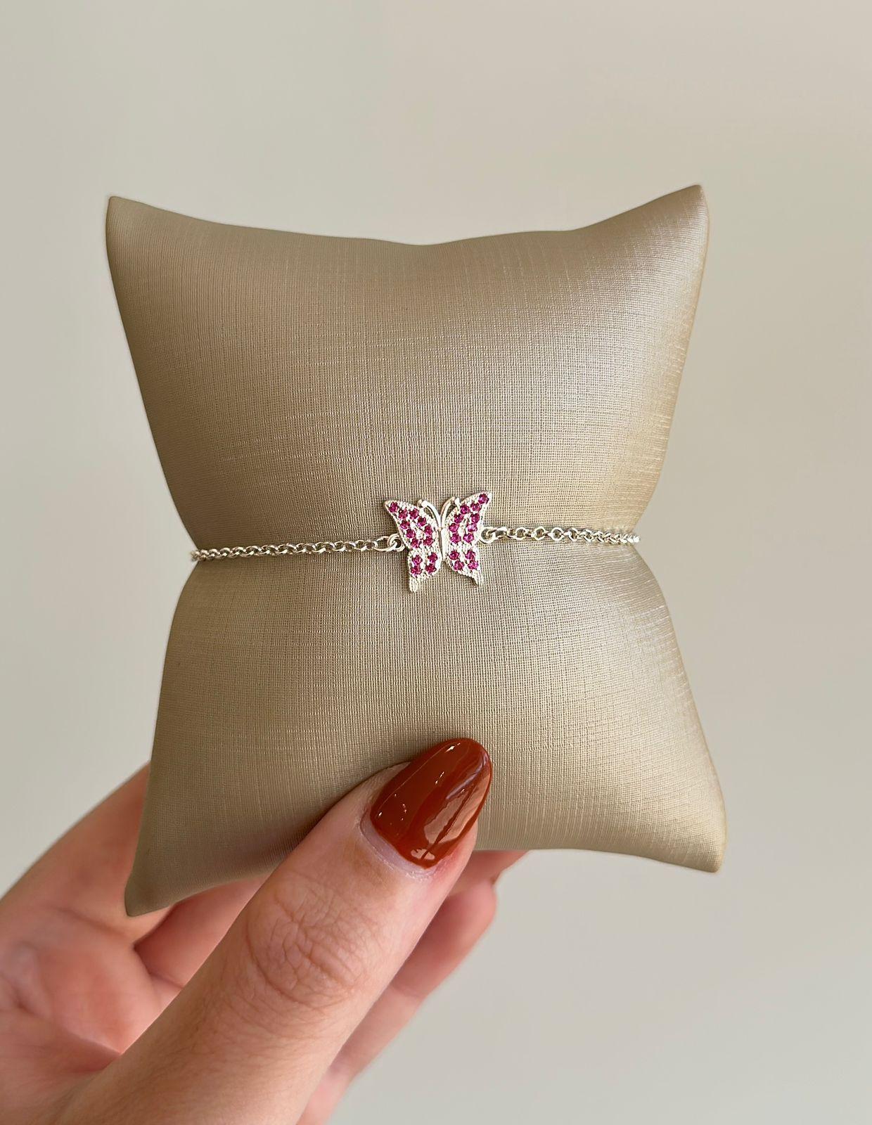 Pulseira Borboleta Rosa Cravejada Prata 925