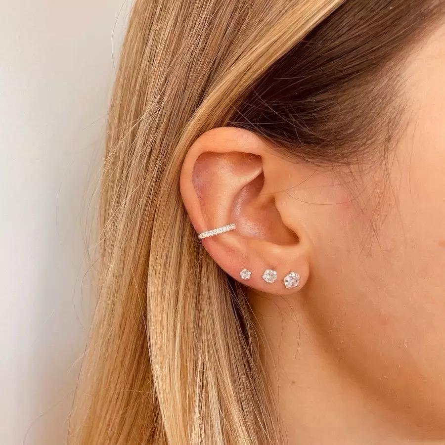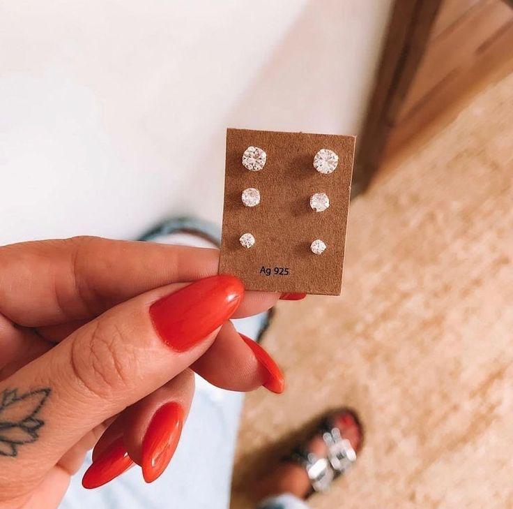 O conjunto é composto por três pares de brincos em tamanhos diferentes, perfeitos para composições versáteis e elegantes.