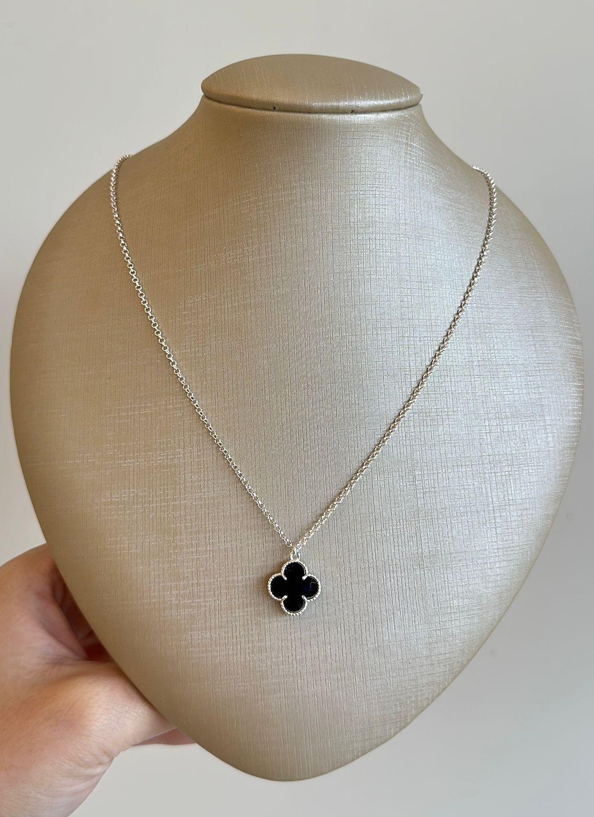 Elegante e cheio de significado, o Colar Trevo Preto traz o símbolo do trevo de quatro folhas, conhecido por atrair sorte, proteção e boas energias. O detalhe em preto adiciona um toque de sofisticação e modernidade, combinando perfeitamente com qualquer look.