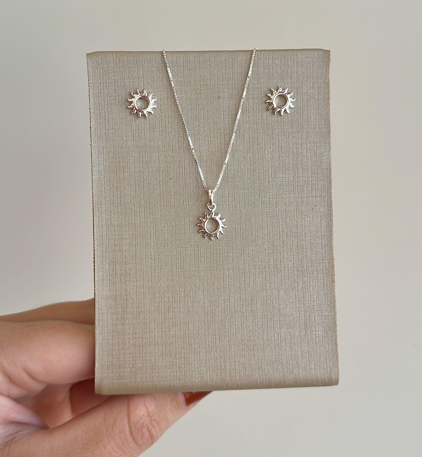 Radiante e cheio de energia, o Conjunto Sol é a escolha perfeita para iluminar qualquer look! Produzido em Prata 925, ele representa luz, força e vitalidade, simbolizando boas vibrações e alegria.