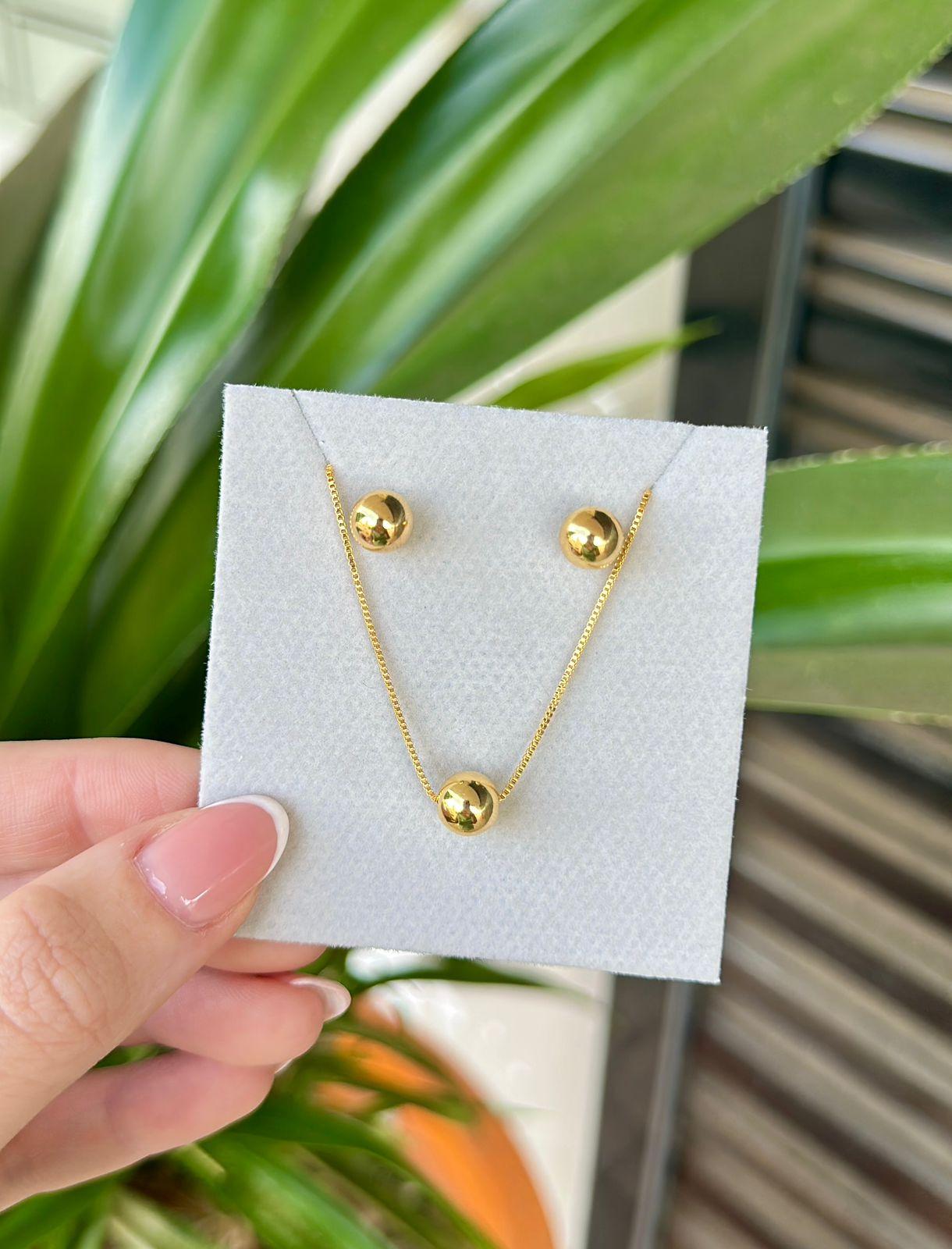 Clássico e versátil, o Conjunto Bolinha é composto por colar e brincos folheados a Ouro 18K, trazendo um brilho sutil e elegante que nunca sai de moda.