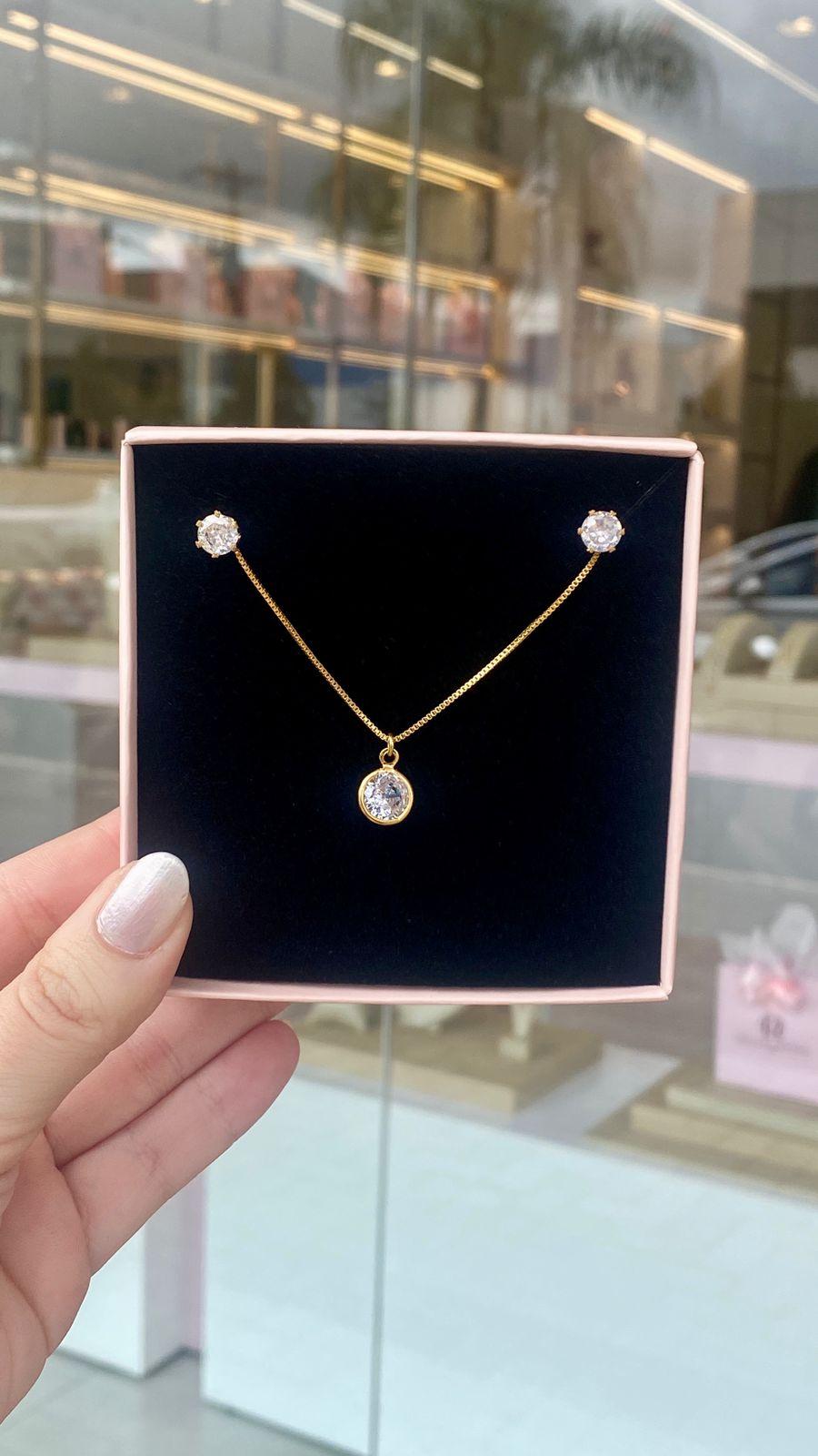 Conjunto Colar e Brinco Ponto de Luz Folheado Ouro 18k