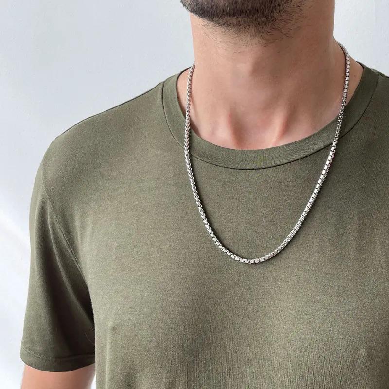 Robusta e moderna, esta corrente masculina em aço combina resistência e estilo em um design atemporal. Com acabamento sofisticado e brilho discreto, é uma peça versátil, ideal para o uso diário ou para complementar produções mais marcantes. Uma escolha perfeita para quem busca durabilidade e elegância em um único acessório.