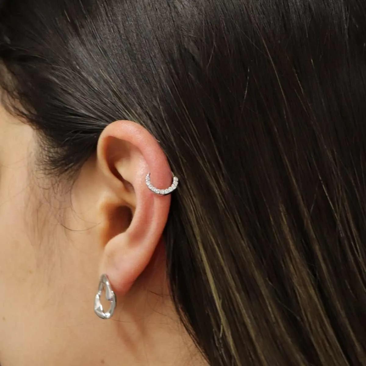 Piercing em Prata 925, desenvolvido especialmente para o hélix, com design delicado e zircônias cravejadas que garantem brilho na medida certa. Uma joia elegante e confortável, perfeita para usar no dia a dia ou para compor mixes modernos na orelha.