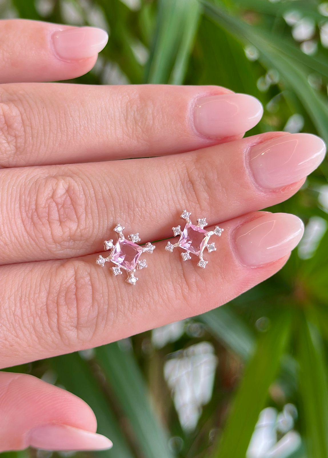 Delicado e romântico, o Brinco Floco de Neve em Prata 925 traz uma zircônia central rosa baby em lapidação quadrada, que adiciona suavidade e feminilidade à peça. Ao redor, zircônias cristal cravejadas realçam o brilho e deixam o design ainda mais encantador.