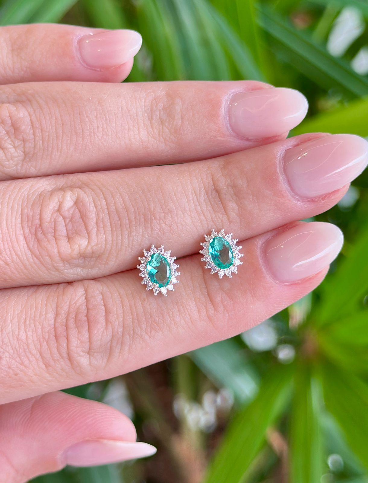 Brinco Oval Cravejado Turmalina Prata 925