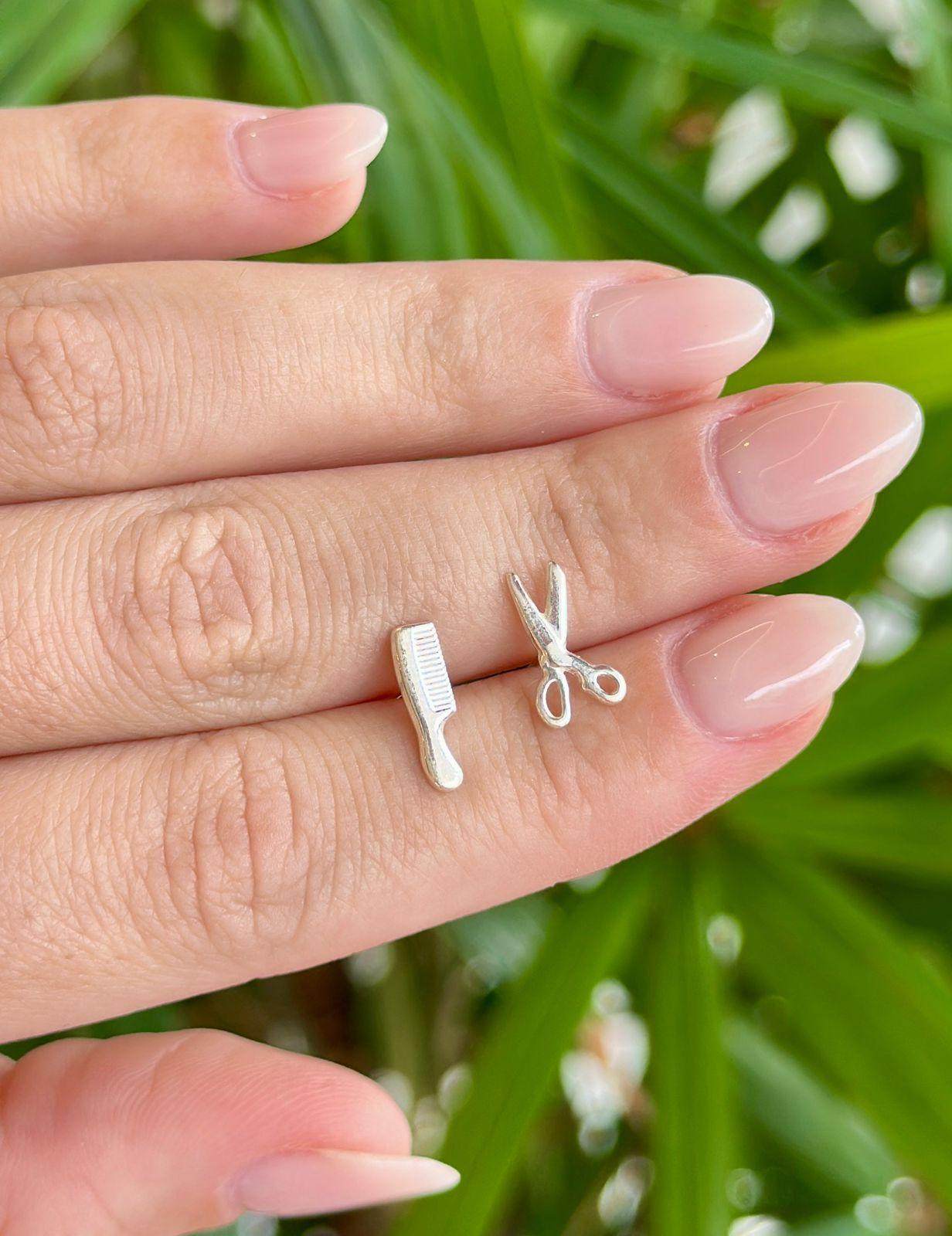 Criativo e cheio de personalidade, esse brinco assimétrico traz um design divertido e moderno: um lado em formato de escova de cabelo e o outro em formato de tesoura. Uma escolha perfeita para quem ama peças diferentes ou para profissionais da área da beleza.