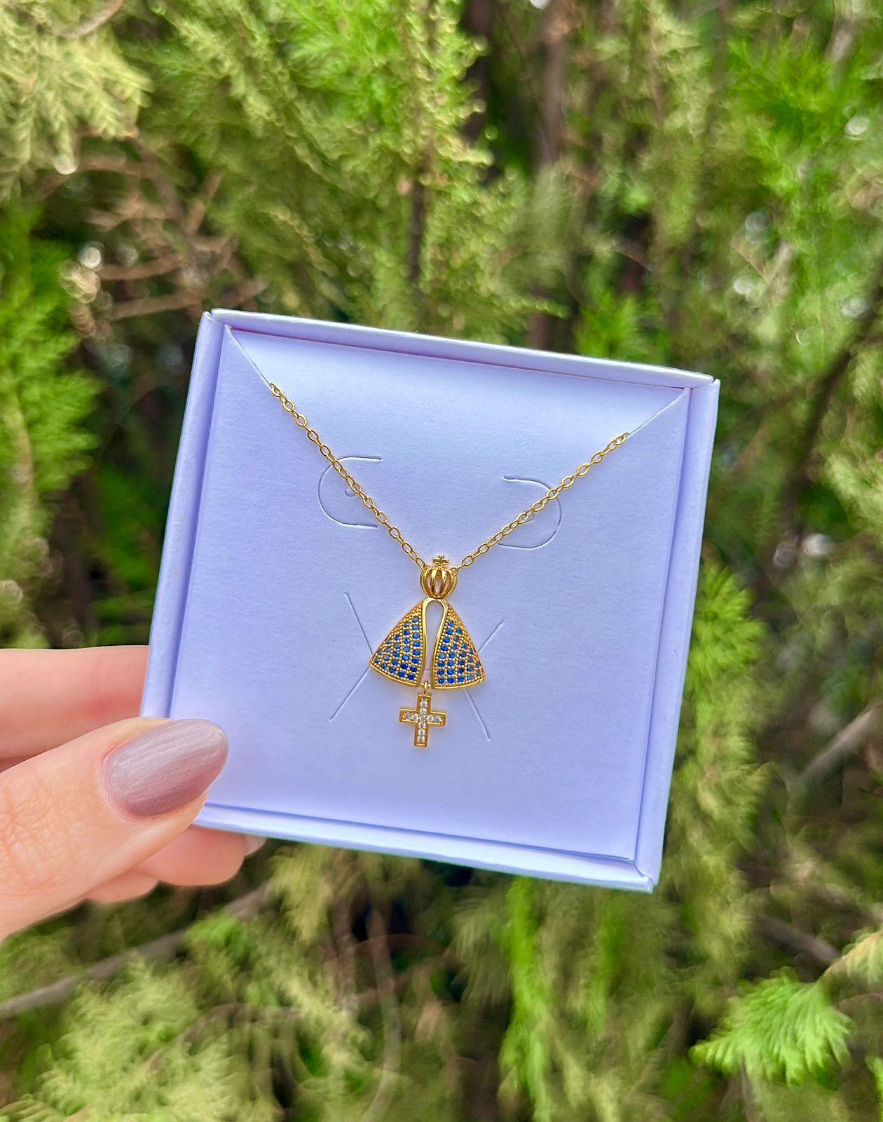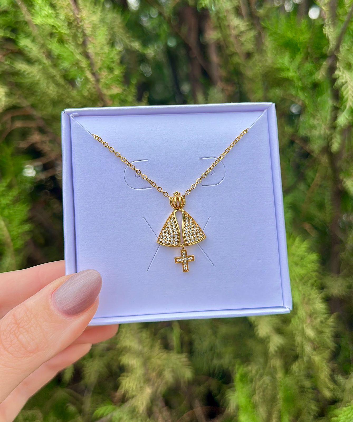 Colar Nossa Senhora Cravejado Folheado Ouro 18k