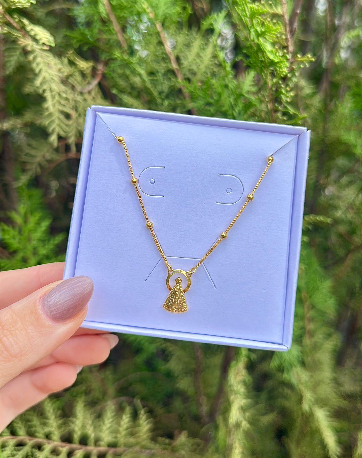 Colar Bolinhas Nossa Senhora Folheado Ouro 18k