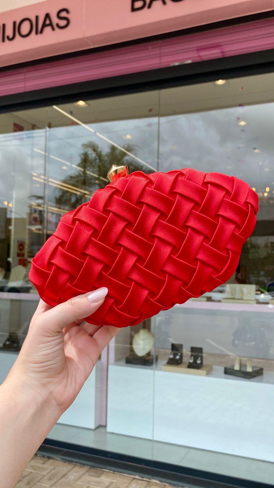 Elegante e marcante, essa clutch vermelha é perfeita para quem quer um acessório que se destaque no look. O design com trama em cetim entrelaçado cria um efeito sofisticado e moderno, trazendo textura e muito charme à peça.