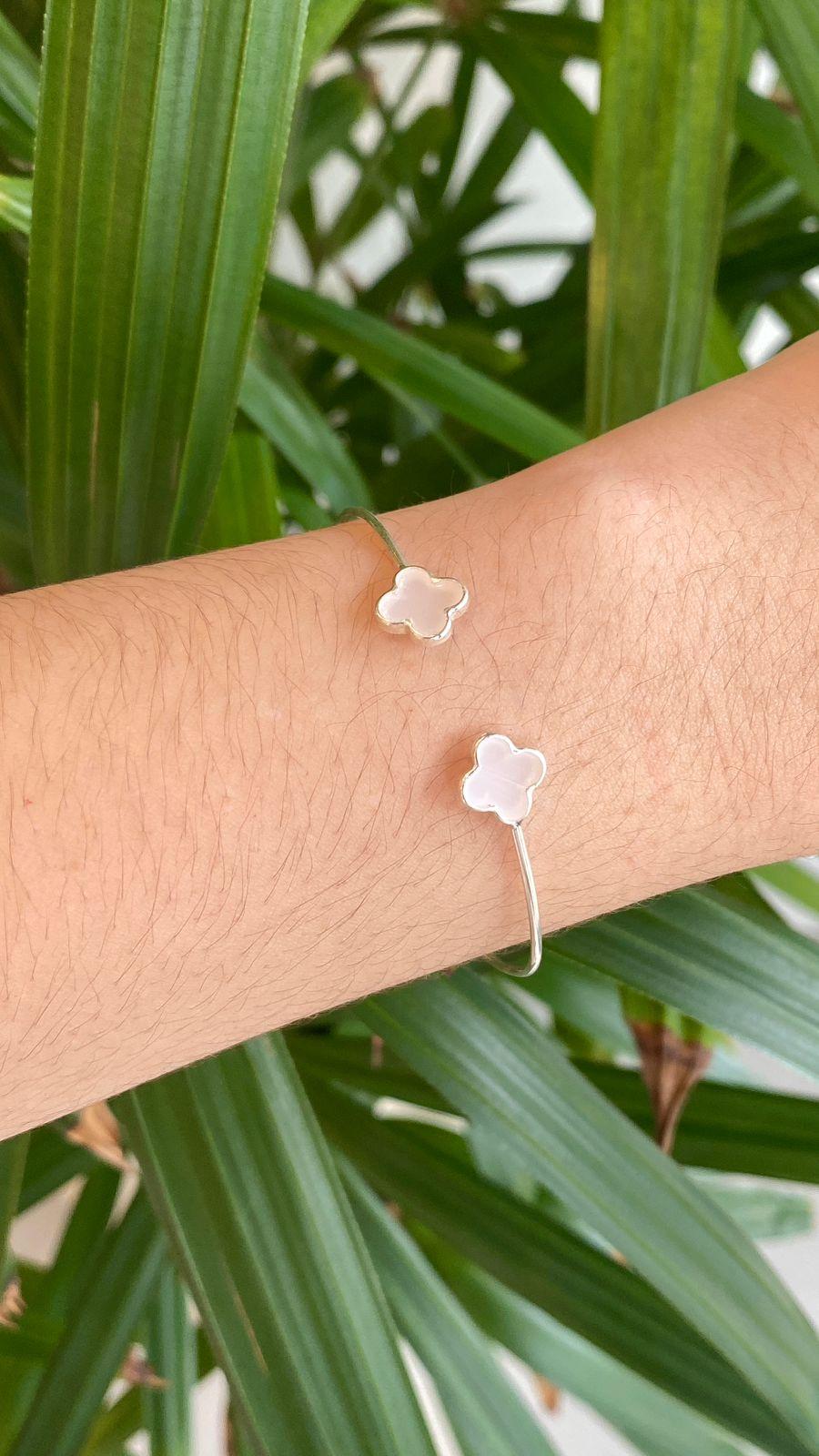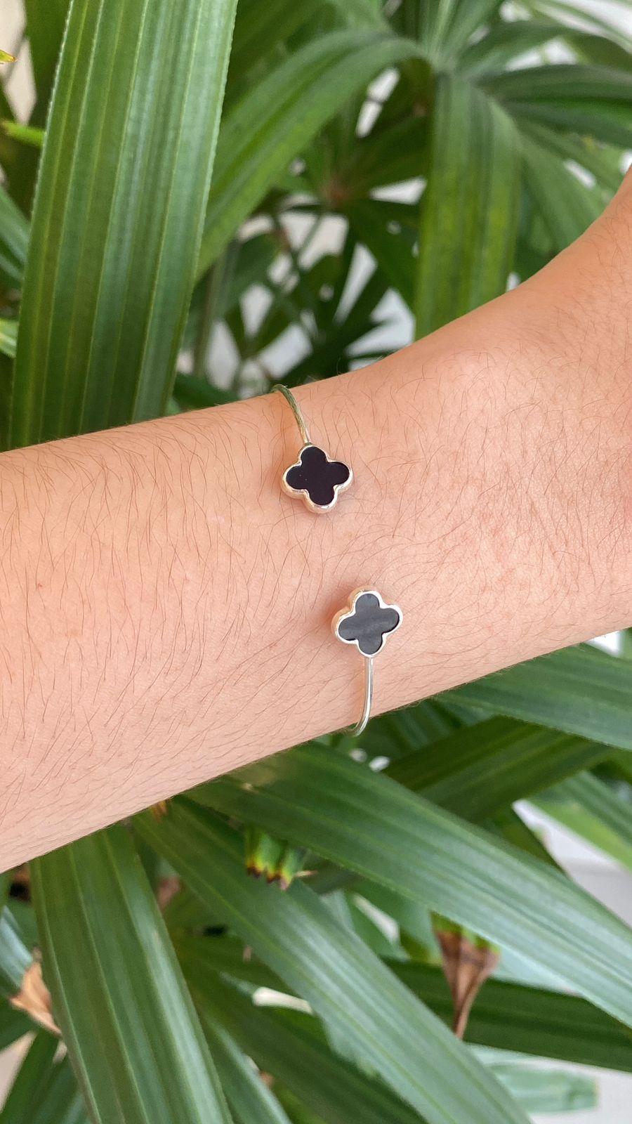 Um toque de sorte e elegância… bracelete aberto em prata 925 com trevo, leve, ajustável e fácil de se apaixonar.