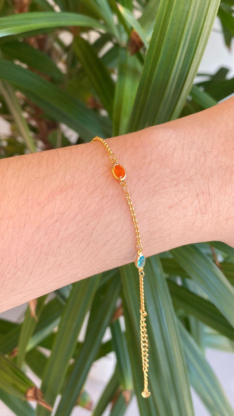 Colorida e cheia de brilho, pulseira com pedras em tons variados, folheada a ouro 18k, perfeita para dar vida e elegância ao look.