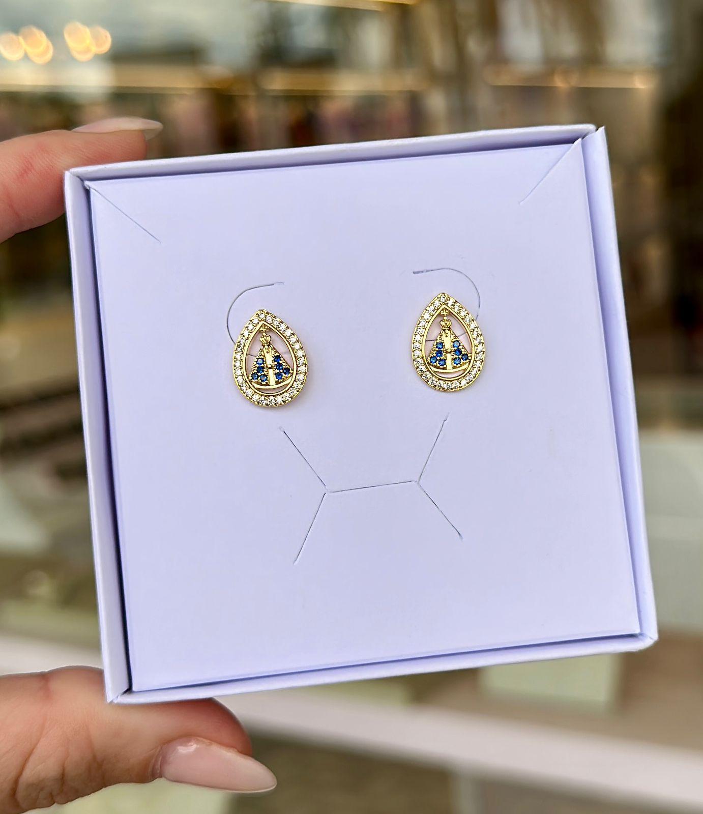 Brinco Cravejado Gota Nossa Senhora Folheado Ouro 18k